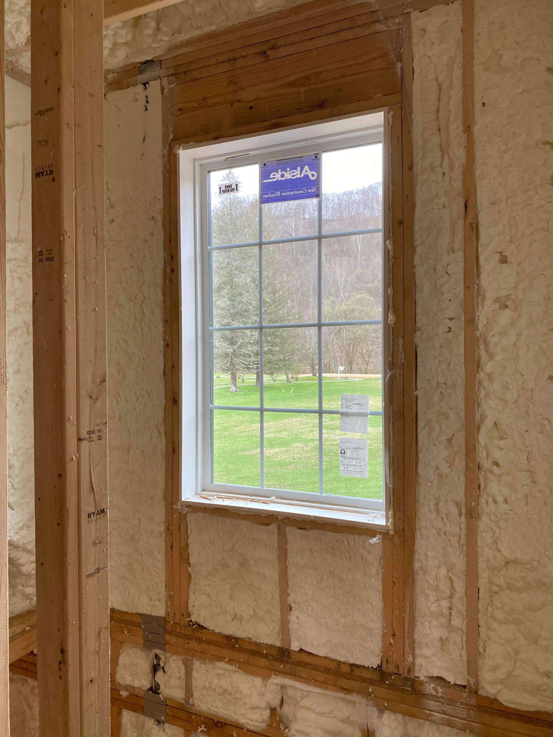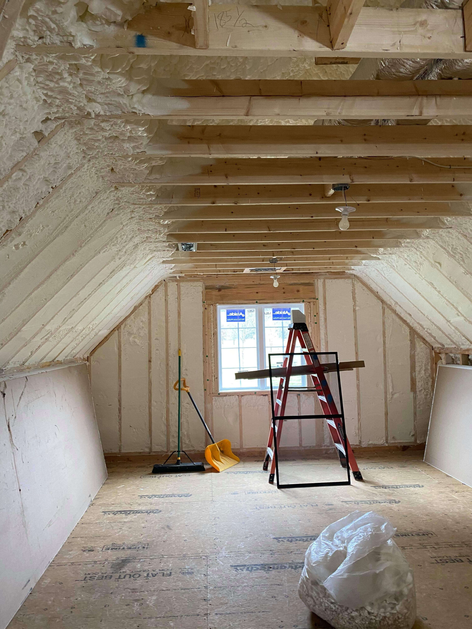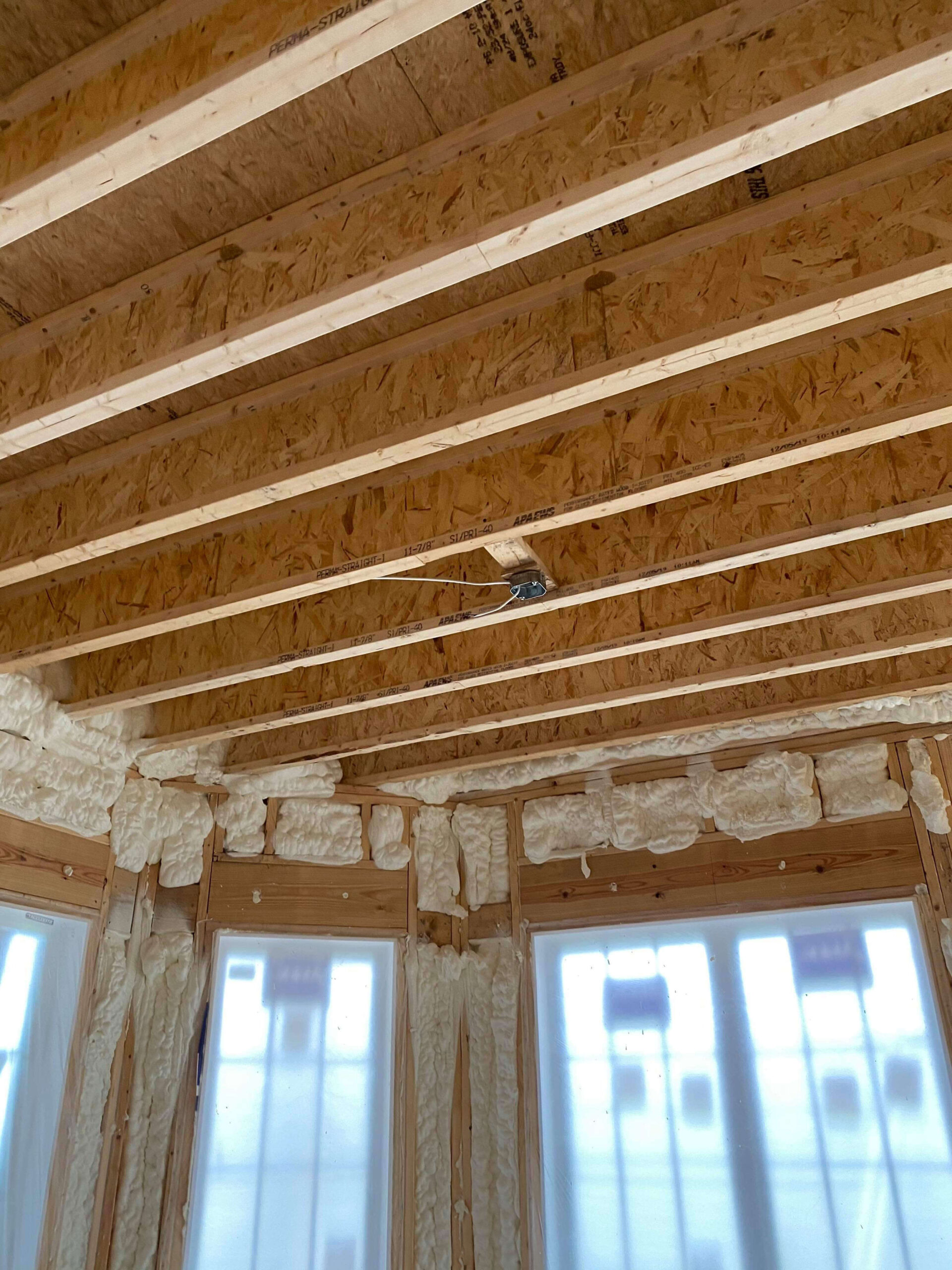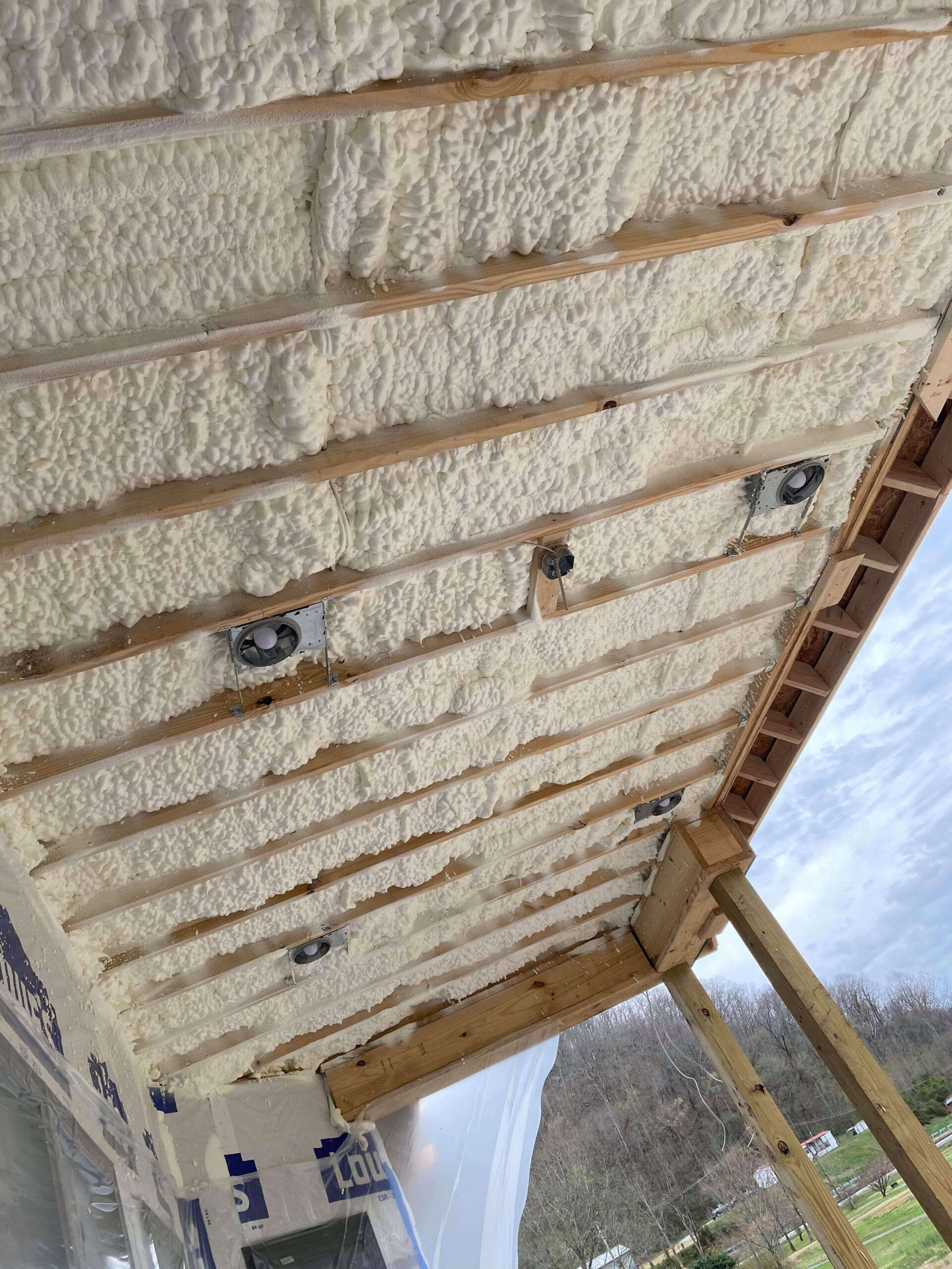 Along the exterior walls, 3.5 inches of open cell foam were applied.