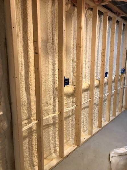 Our crews insulated the wall cavities with spray foam insulation to provide a complete air seal as well as meet the customer’s targeted R- Value.
