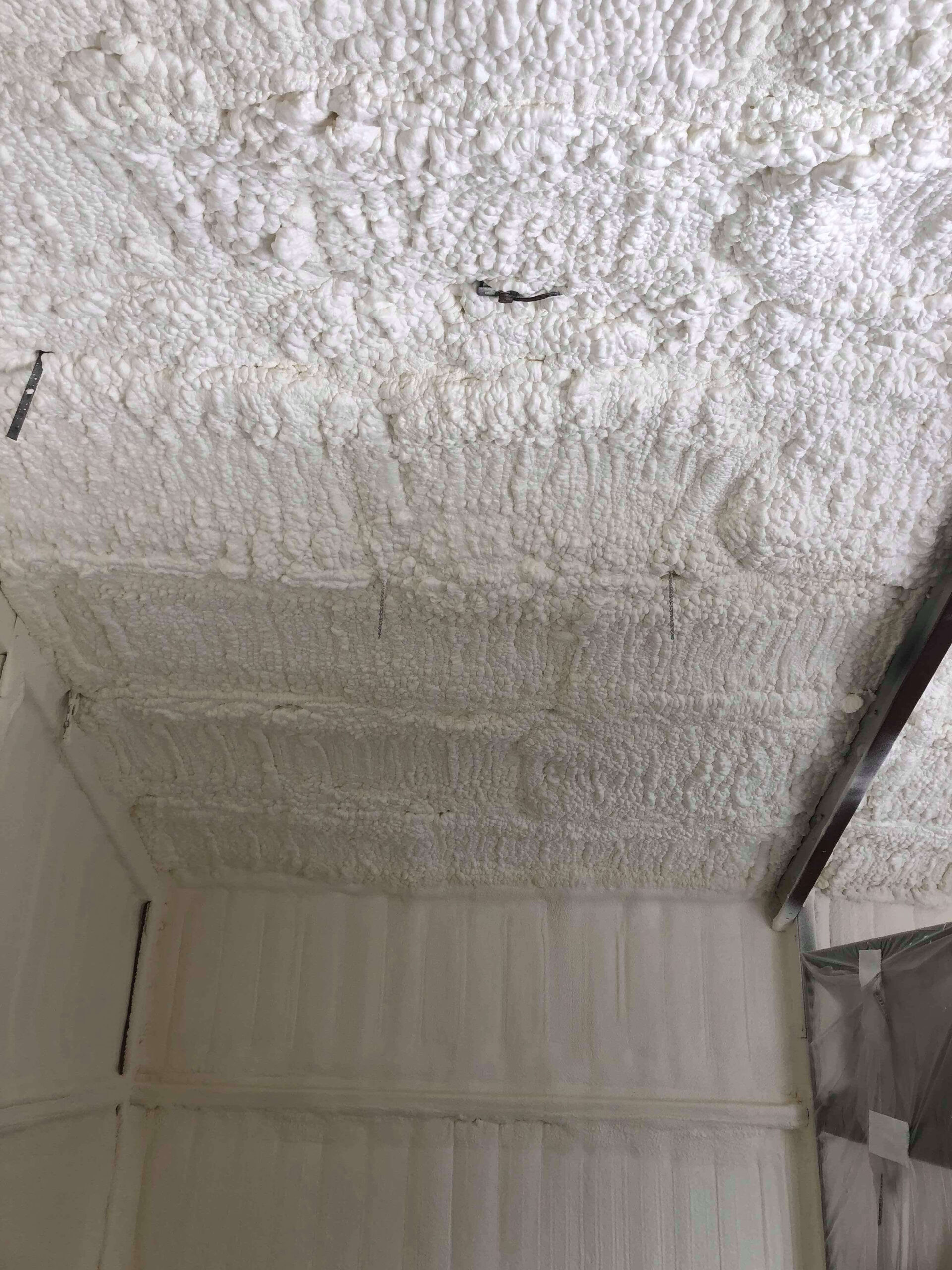 The roof deck was insulated with 6″ of open cell foam insulation, sealing off all ridge, gable and soffit vents. This made the garage air tight, 94% efficient Thermal cap on the garage and preventing moisture and mildew building up in the area.