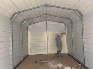Spray foam polyurethane is not only a perfect insulation but also a great way to weatherproof your metal building.Spray foam forms an integral bond with metal building surfaces and conforms to irregular surface and provides an effective air seal, reducing energy loss as well as preventing damage from exterior moisture. Spray foam can be applied to both the interior and exterior of metal buildings.