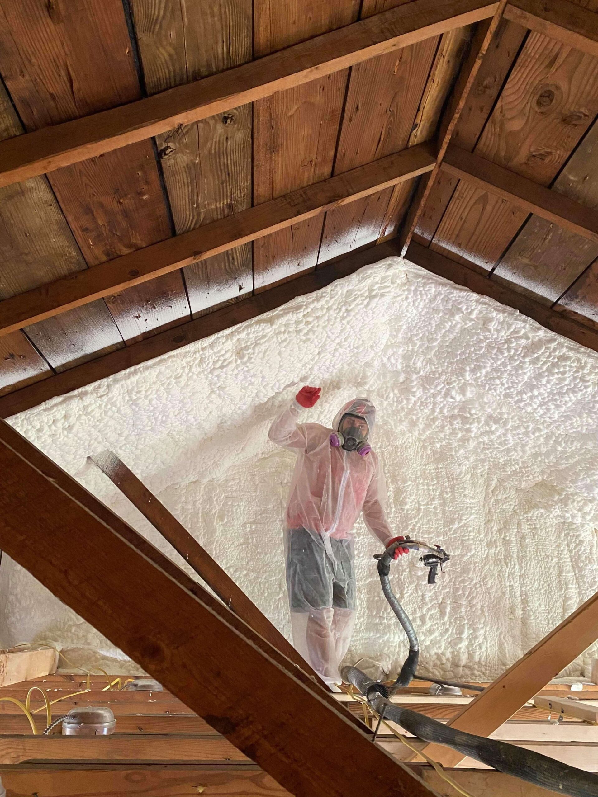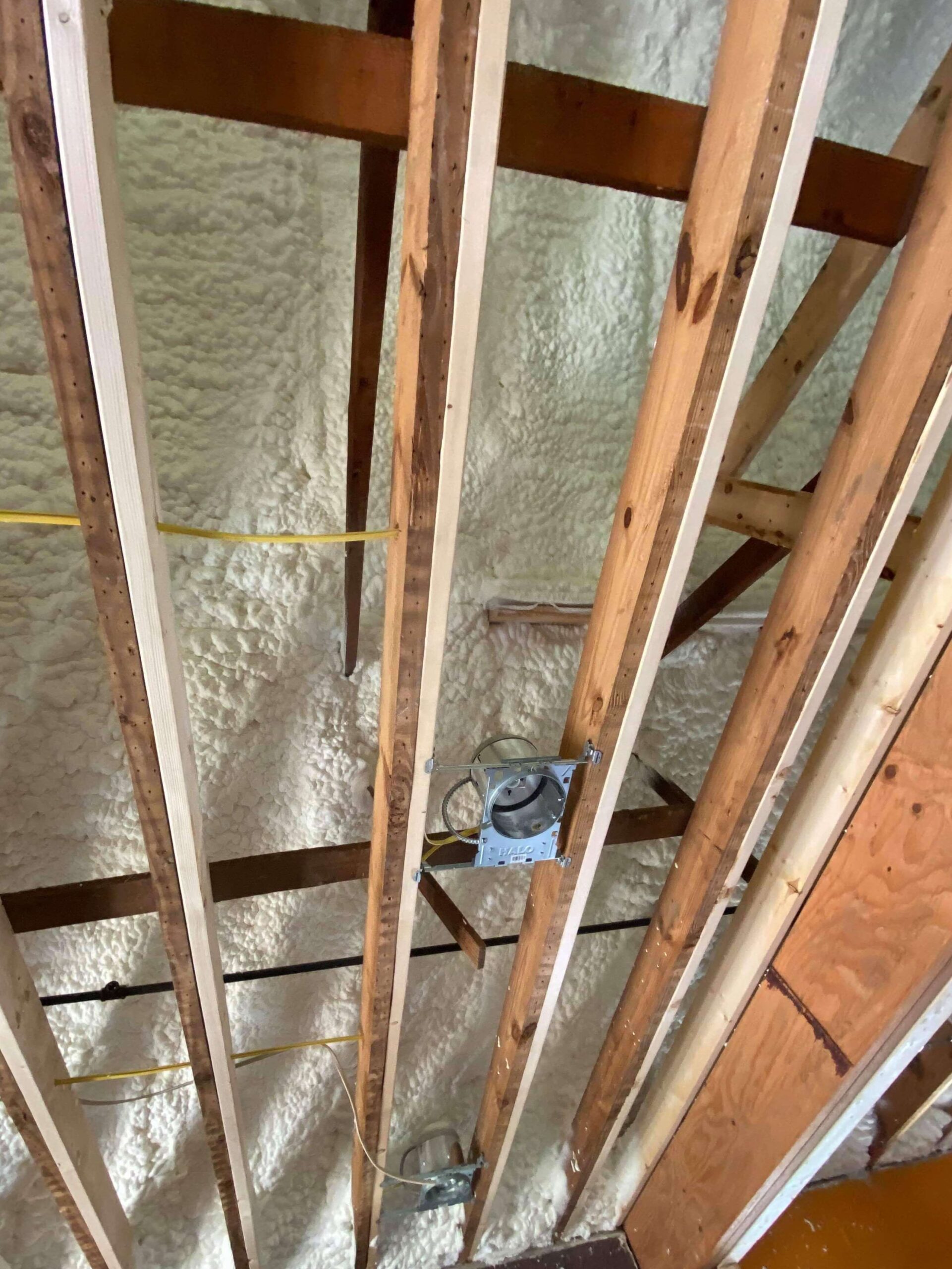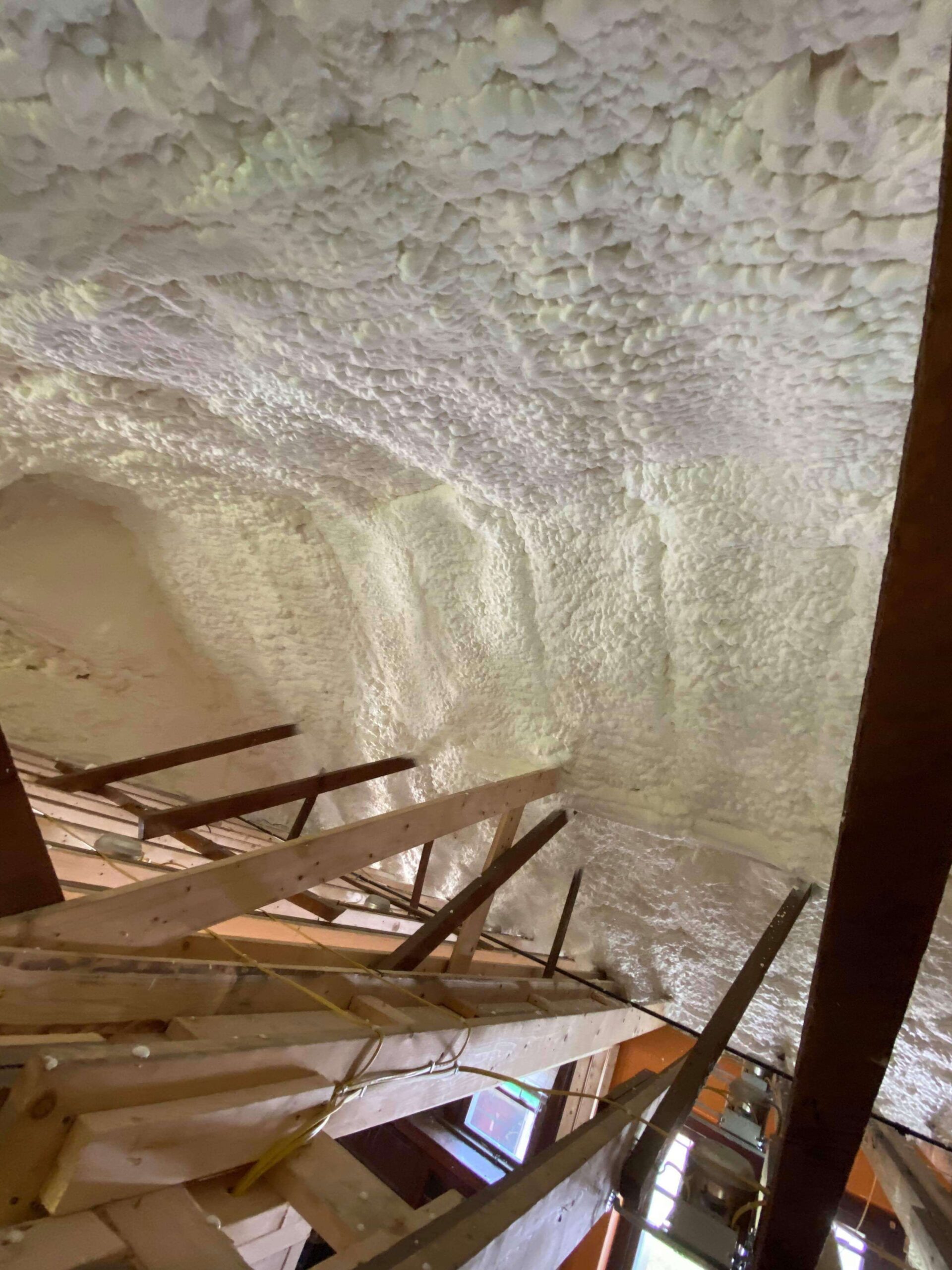 Our crew applied 6 inches of open cell foam to the roof deck. The properties of foam insulation are almost like epoxy glue, it securely adheres to the surface of your roof deck. So there are very few, if any air gaps, voids, channels where energy can escape.