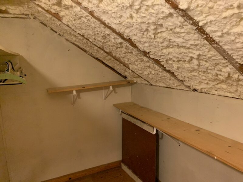 Our crew air sealed and installed spray foam insulation throughout the roof deck of the entire attic. This transformed the attic into a conditioned living space and can now be used for a functional and comfortable space.