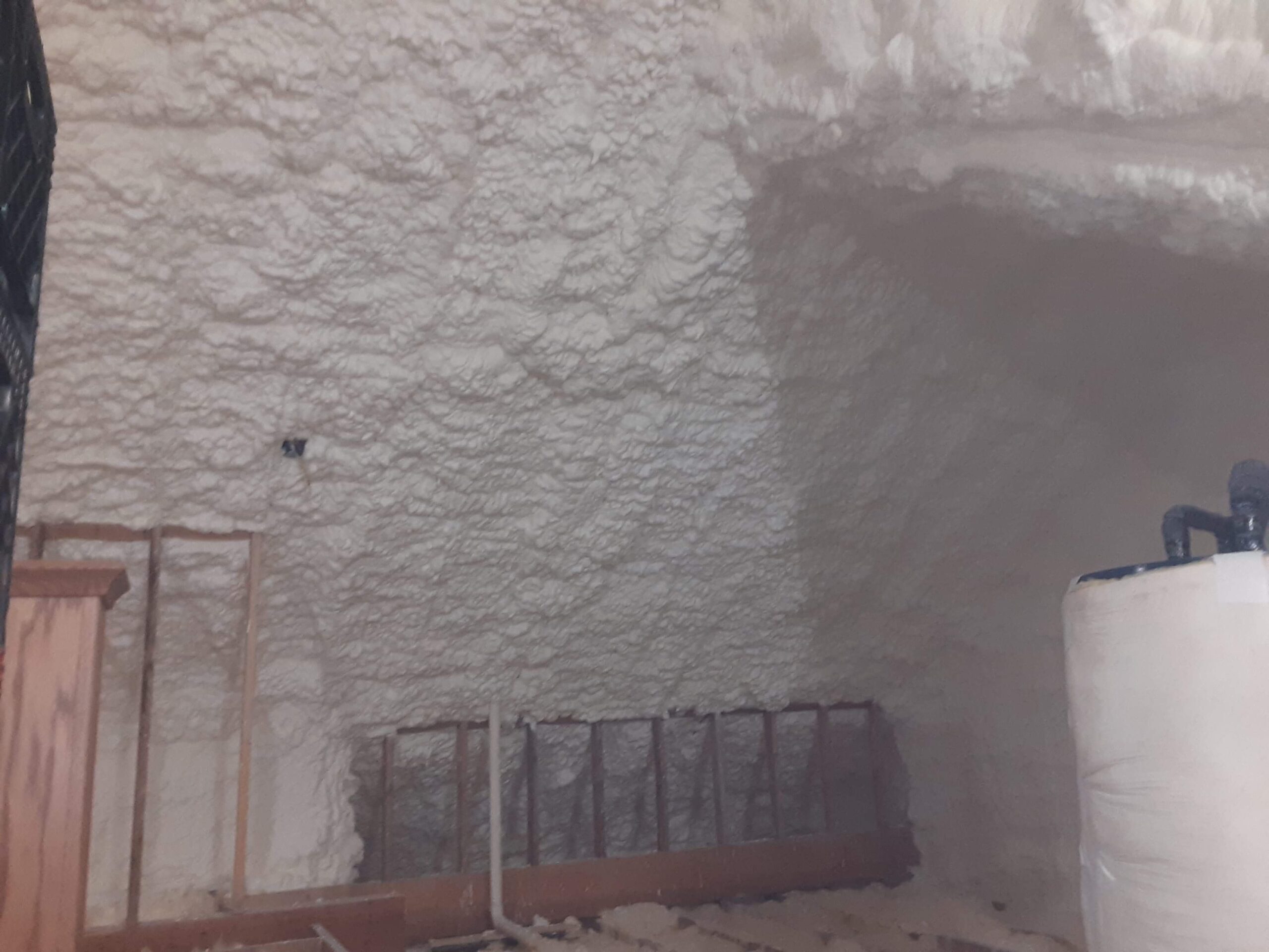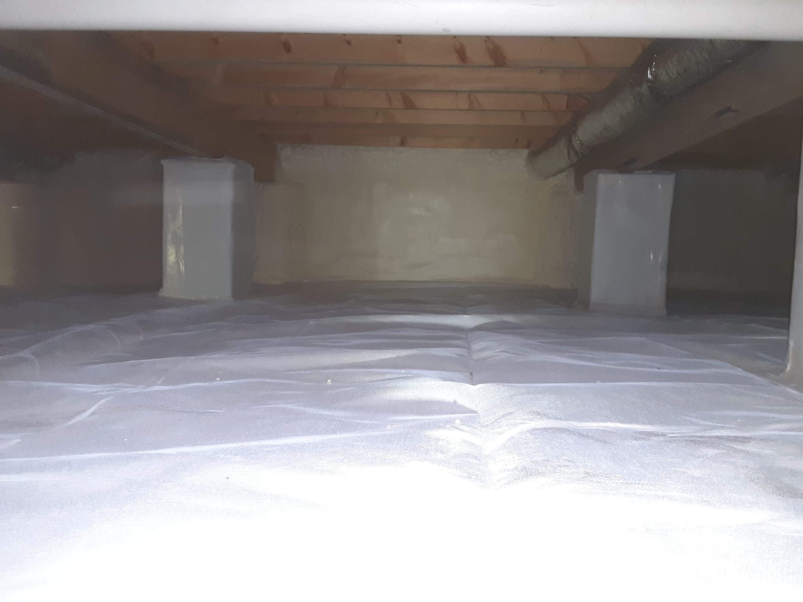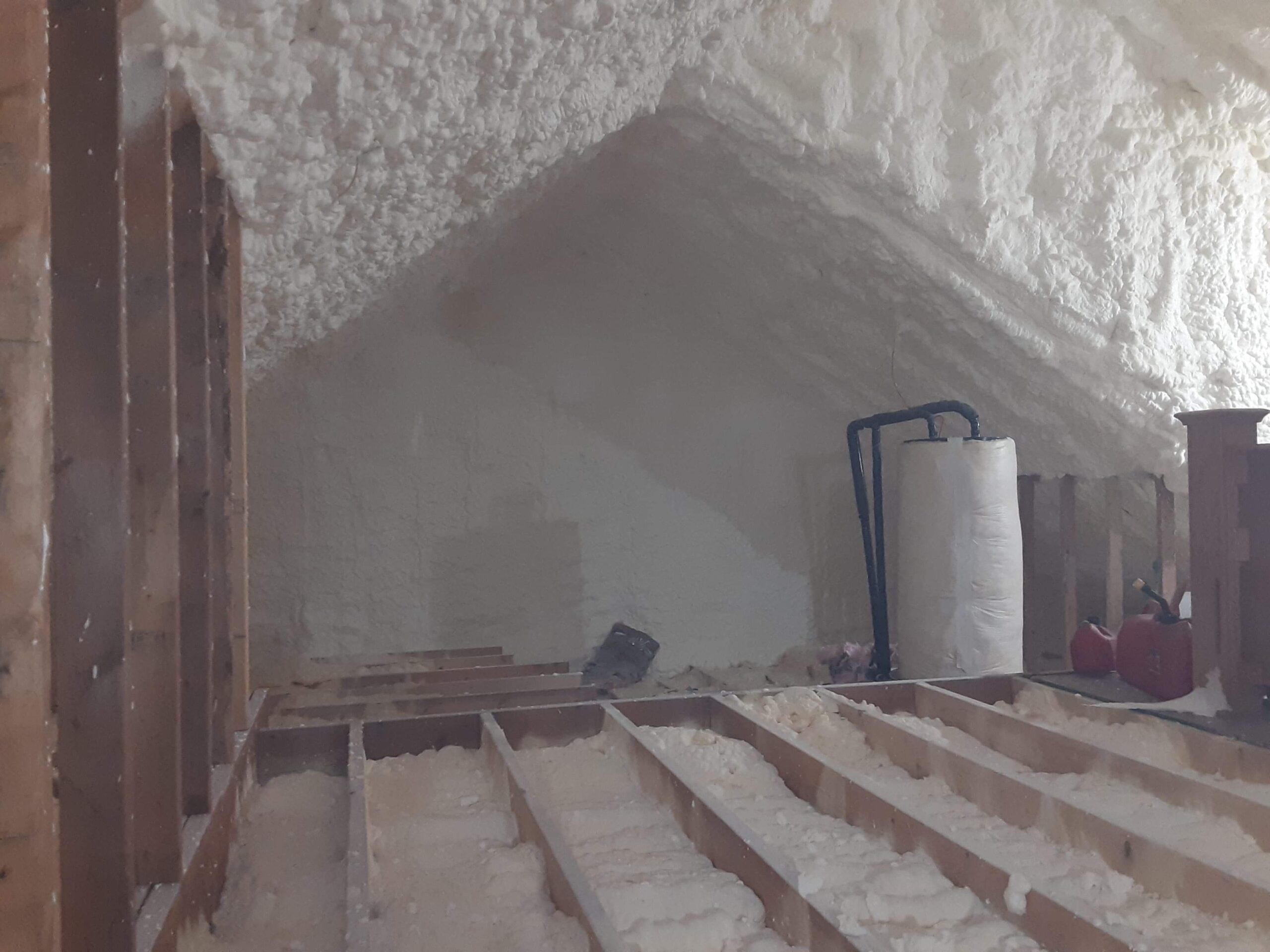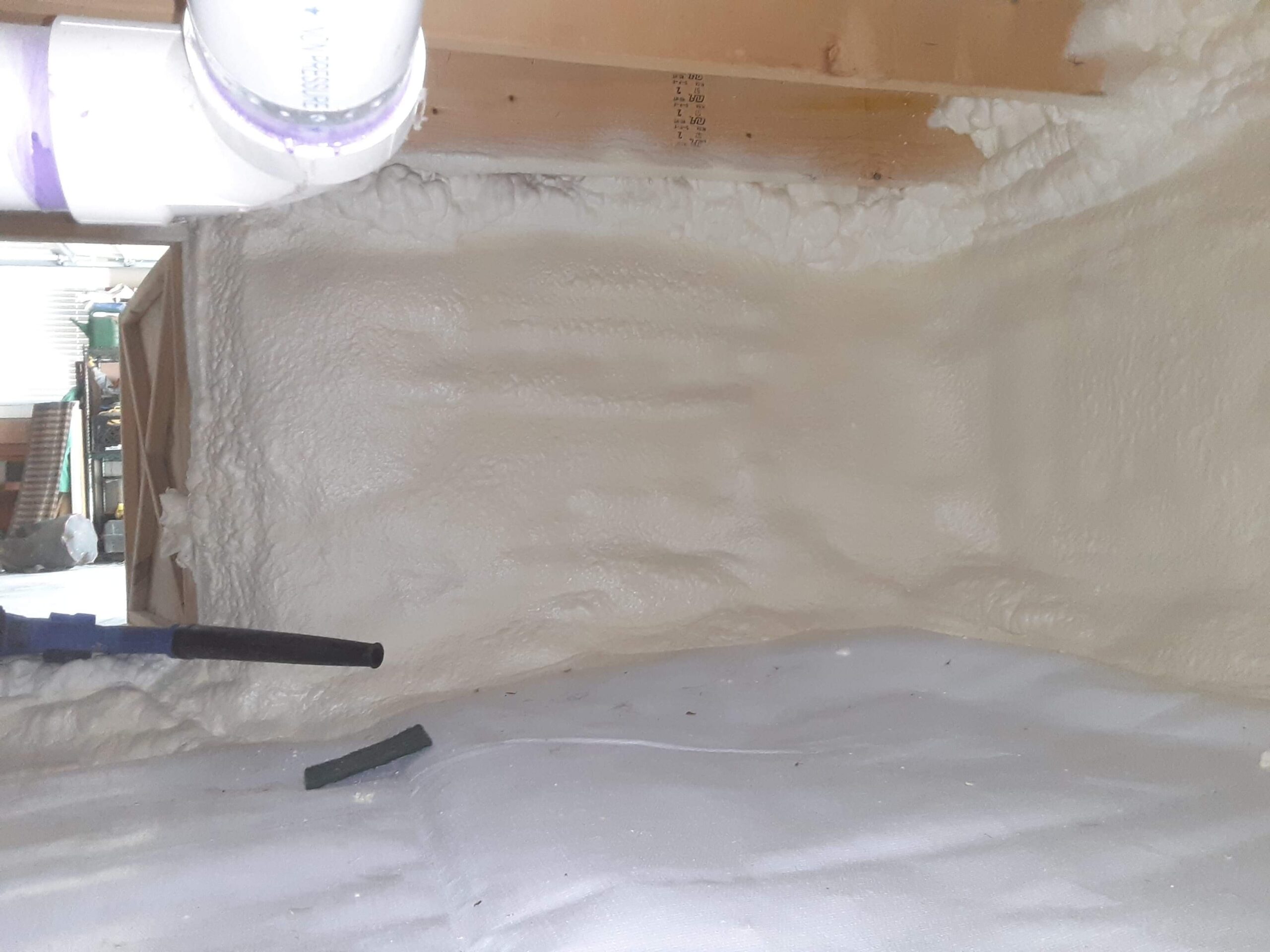 In the crawlspace area, we covered the earth with a 30 mil liner and sealed the liner around the perimeter walls with closed cell spray foam insulation. The liner helps prevent mold and mildew growth as well. This created a continuous seal around the foundation, as all vents are sealed up. The rim joist area was insulated with spray foam insulation and a dehumidifier was installed and drained to the outside of the foundation. We also installed a new crawlspace access door. In the attic, the roof deck was insulated with a nominal 6 inches of open cell spray foam insulation. This brings the attic into the thermal envelope of the home, ensuring that the attic space stays a more consistent temperature and a healthier place for storage items. Both of these projects together will make the home much more comfortable…less drafts, less humidity, cleaner air, and a more comfortable temperature without overworking the HVAC unit.