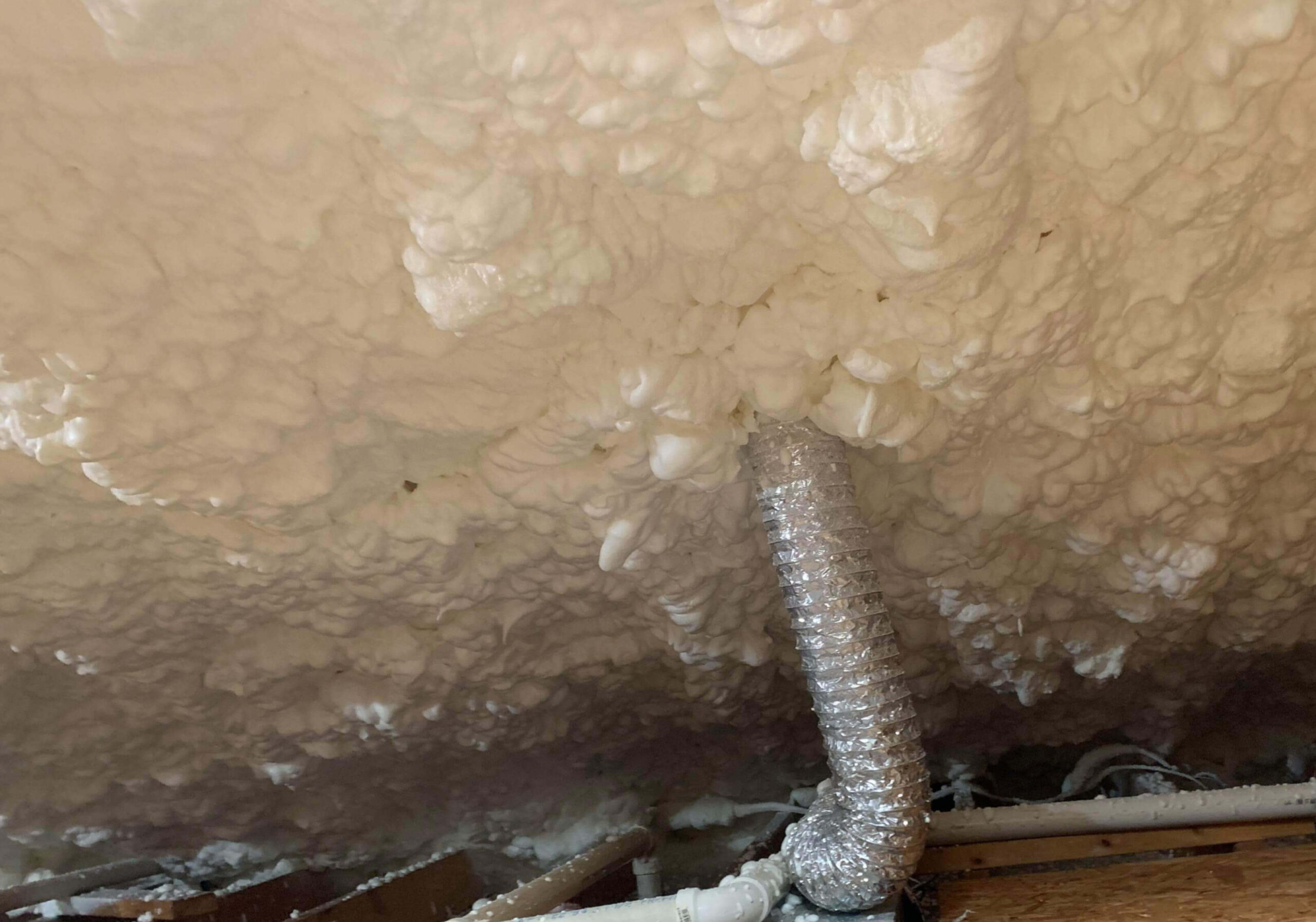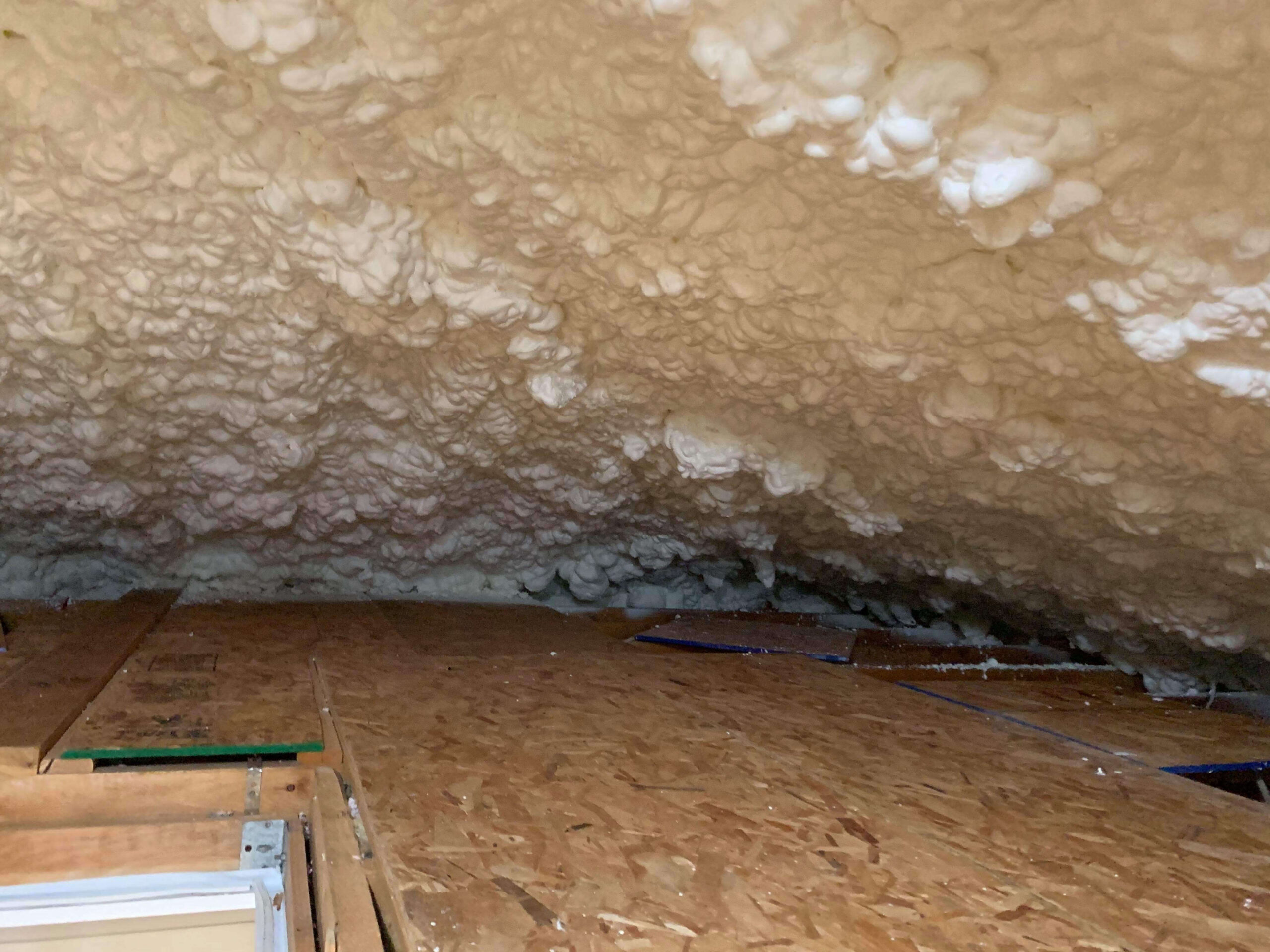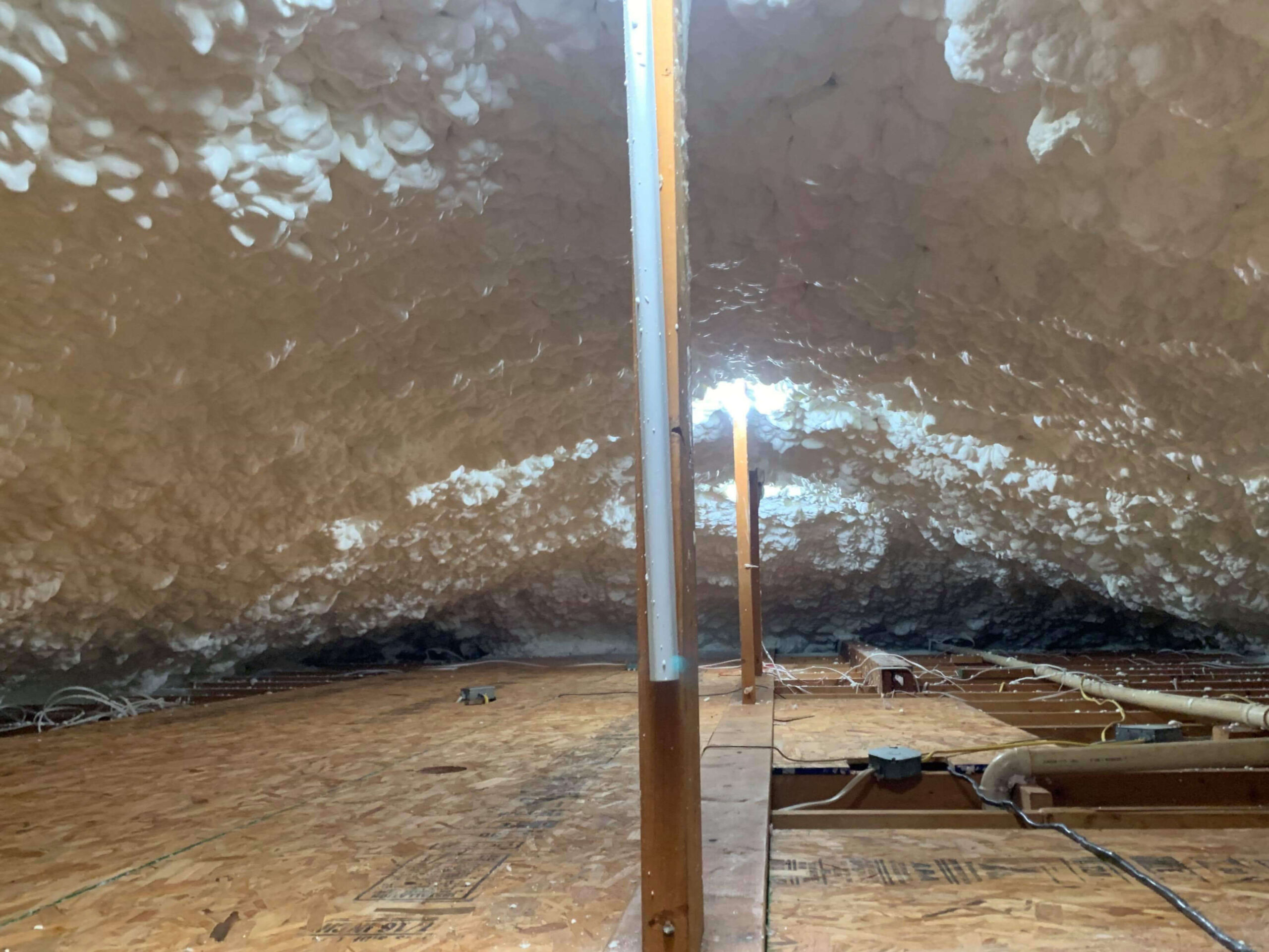 The Reed’s Sprayfoam Insulation team removed the original insulation, vacuuming and disposing of it before moving on to install 6″ of open cell foam in its place. This sealed off all ridge, gable, and soffit vents and creating an air tight attic that prevents future moisture issues as well as creating an energy efficient home for the customer.