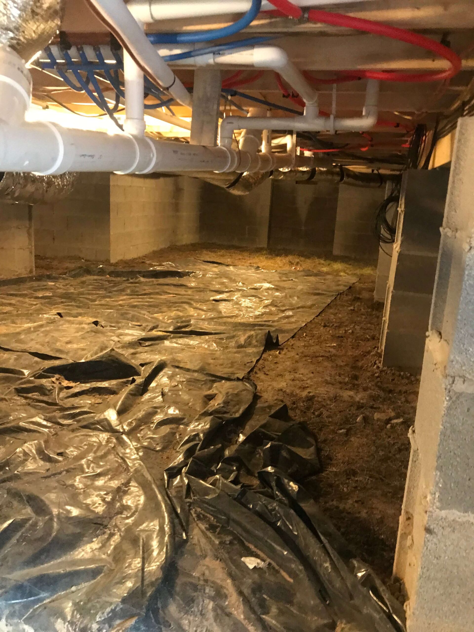 Reed’s Waterproofing and Foundation Solutions provided a vapor barrier liner into the crawl space to prevent future moisture and odors from entering the home. This ensured that the homeowners felt more comfortable in their own home with no future worries of mildews or molds being created under the house.