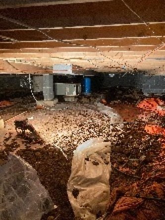 Our crews removed of the previous liner, installed drainage pipes, performed a mold treatment as well as installed a complete encapsulation system with sump pump and dehumidifier. A heavy liner was installed over the ground, and pillars and perimeter walls were sealed and insulated with closed cell foam. The drainage system will prevent future flooding and damage to the home’s crawlspace area. The encapsulation will ensure that the space is cleaner and more energy efficient, which will impact the efficiency and comfort of the entire home.