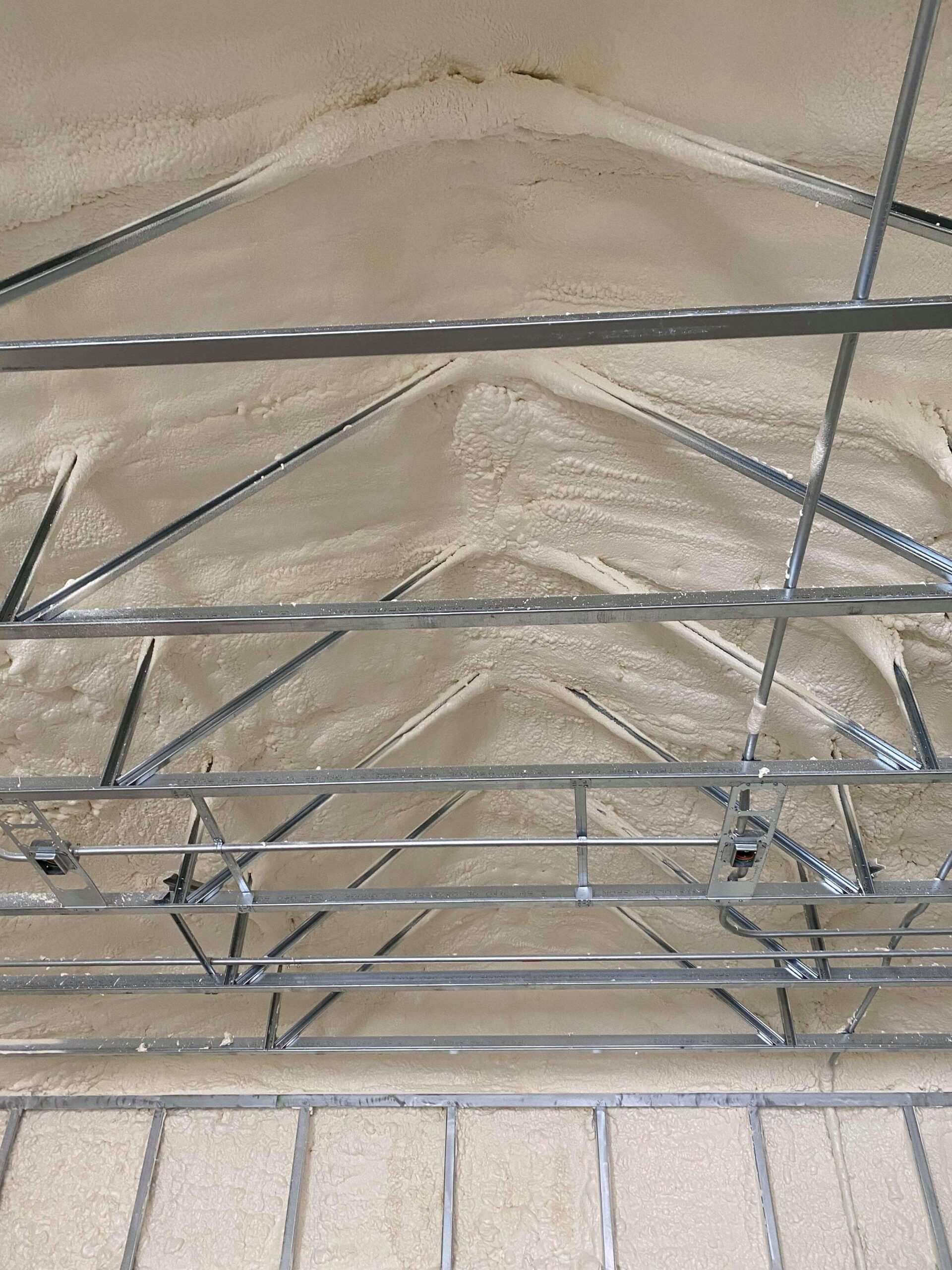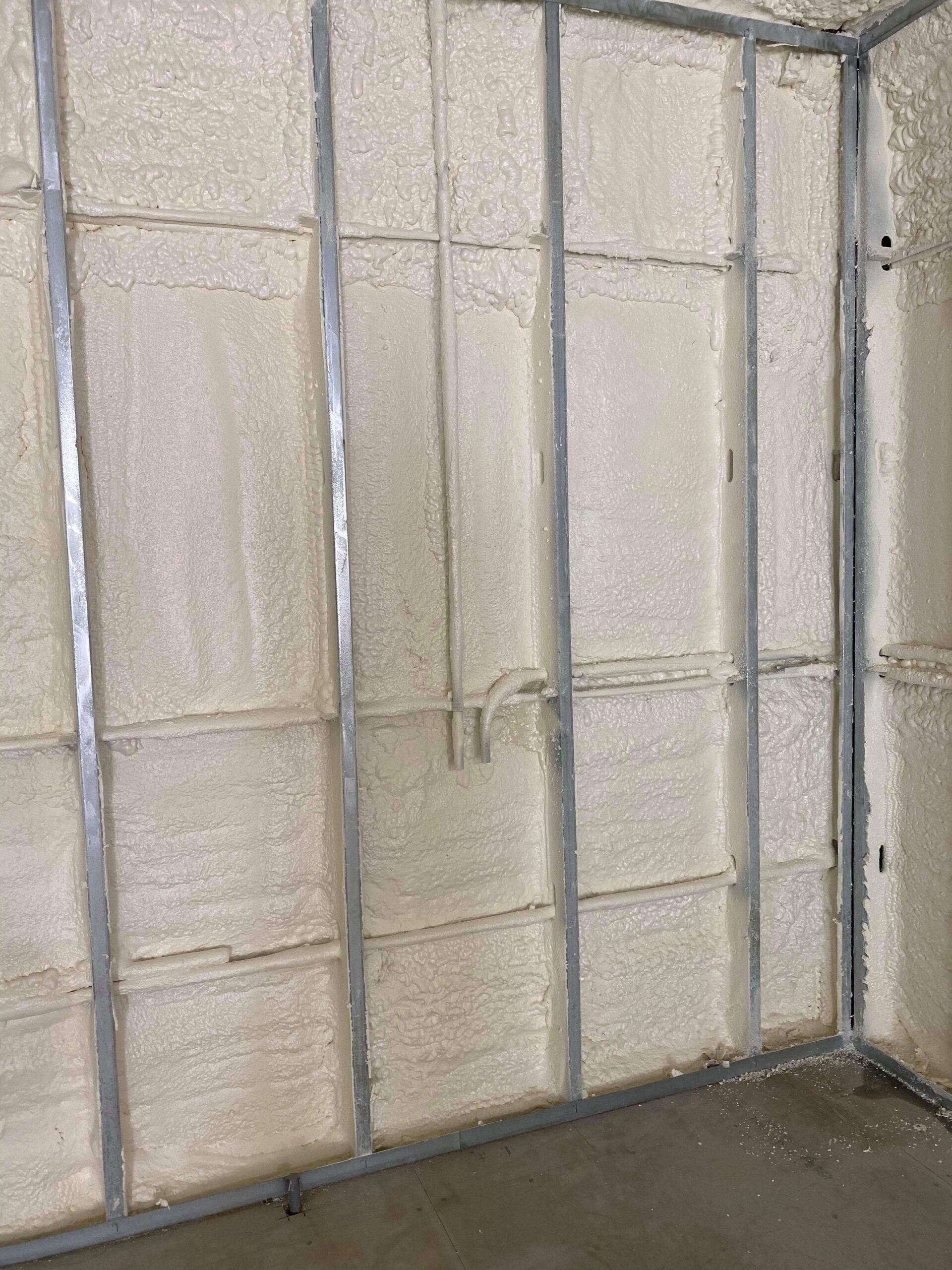 Our crew insulated the walls and gable end walls with 3 inches of closed cell foam. Then they insulated the roof deck of the structure will be sprayed with 4 inches of closed cell foam insulation.