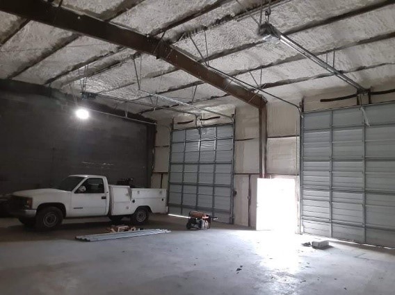 Our crews insulated the exterior walls and ceiling of the garage to prevent moisture issues in the future as well as keep the metal structure comfortable year round.