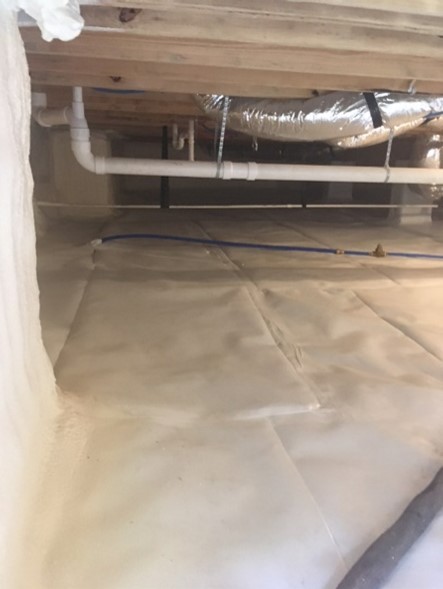 Our crew installed a heavy liner over the ground, wrapped the pillars, and sealed around the perimeter walls with closed cell foam insulation. This encapsulation system brings the crawlspace area into the thermal envelope of the home and makes the space drier and healthier. This will improve air quality in the home and also help the customer save money on energy costs.