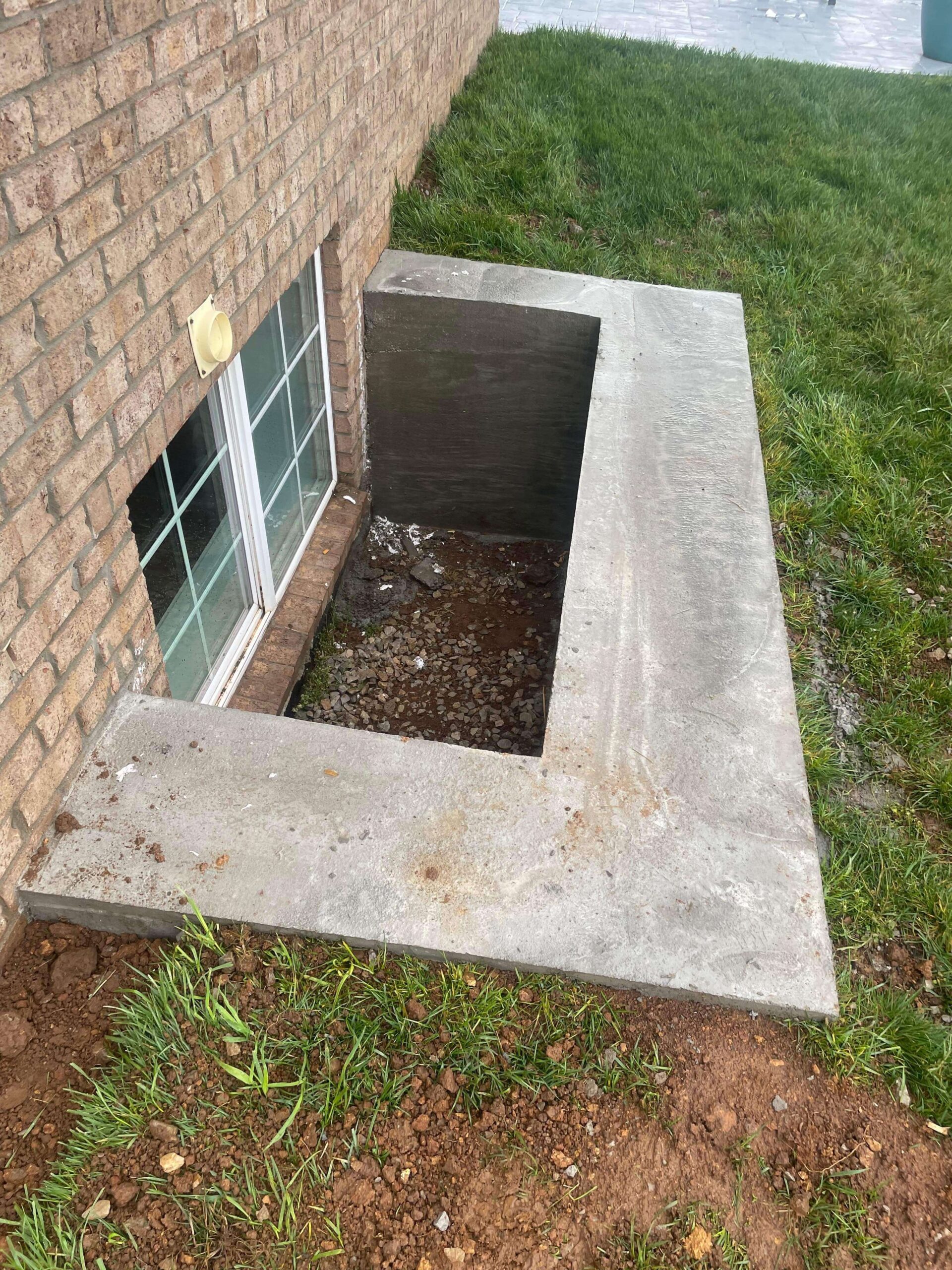 Our crews installed a window well around the perimeter of the basement window to prevent ground water from seeping in through the window area.