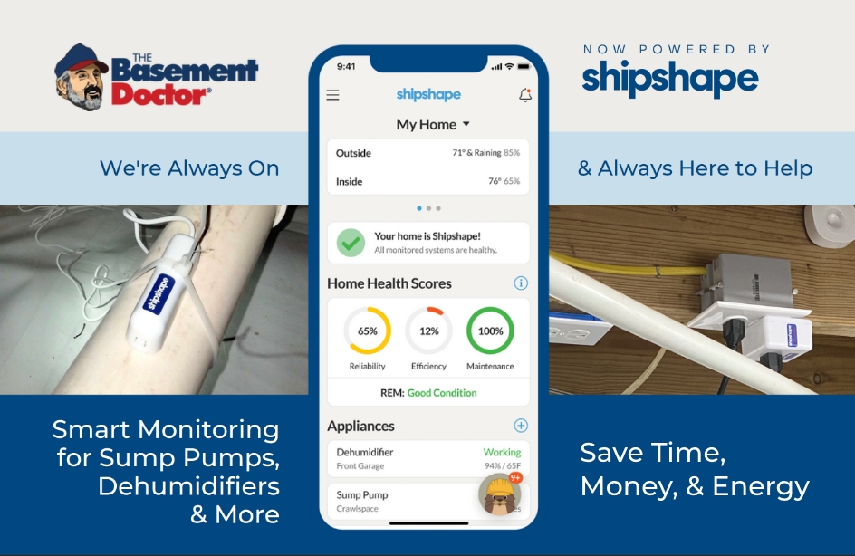 Are you worried about your sump pump or dehumidifier going out when you need them most? When these devices fail, it could spell disaster for any home. That is why The Basement Doctor Columbus, in partnership with Shipshape, is here to offer our Central Ohio homeowners Shipshape home monitoring and predictive maintenance solutions that provide peace of mind their homes are protected when severe weather hits.